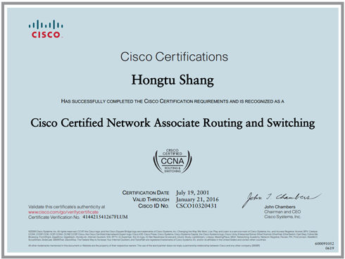 Cisco(思科)認(rèn)證培訓(xùn)證書樣本展示(CCNA):