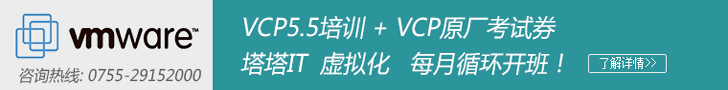 更多課程資訊及開(kāi)班信息可聯(lián)系塔塔IT 課程顧問(wèn): 0755--29152000 或 在線咨詢。 官方微博: @塔塔IT 微信: 添加公眾賬號(hào)“tatait”加關(guān)注 VMware虛擬化學(xué)員QQ群:165359137