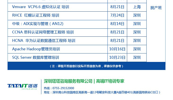 咨詢(xún)郵箱:tata@tatait.com 咨詢(xún)電話(huà):0755-29152000 新浪微博:@塔塔IT 微信:添加公眾賬號(hào)“塔塔IT”加關(guān)注!塔塔IT為邁瑞思旗下子品牌,專(zhuān)注高端IT培訓(xùn)。