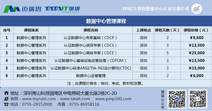CDCP?(Certified Data Center Professional)認(rèn)證課程為期兩天,旨在讓學(xué)員了解數(shù)據(jù)中心的主要組成。本課程幫助學(xué)員了解如何設(shè)置并改進(jìn)功率、冷卻、安保、布線、安全等關(guān)鍵環(huán)節(jié),確保建立高可用性數(shù)據(jù)中心。本課程還介紹了運(yùn)營(yíng)和維護(hù)的關(guān)鍵因素。