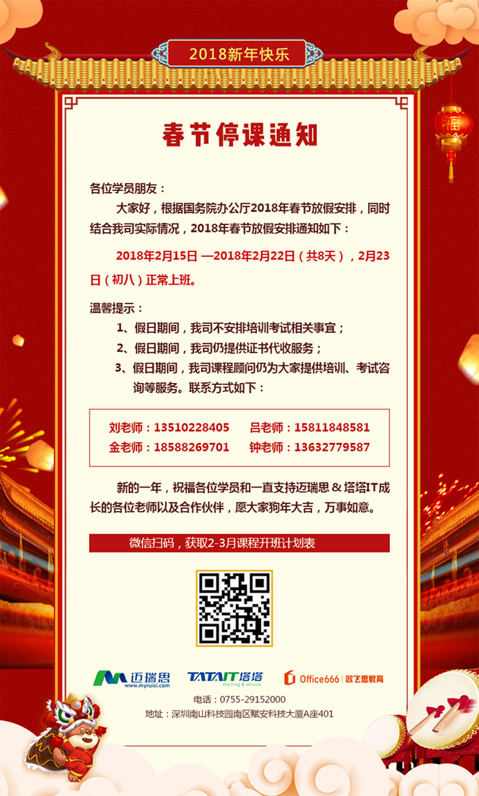 咨詢(xún)郵箱:tata@tatait.com 咨詢(xún)電話(huà):0755-29152000 新浪微博:@塔塔IT 微信:添加公眾賬號(hào)“塔塔IT”加關(guān)注!塔塔IT為邁瑞思旗下子品牌,專(zhuān)注高端IT培訓(xùn)。