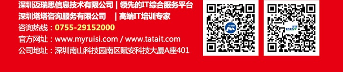 咨詢郵箱:tata@tatait.com 咨詢電話:0755-29152000 新浪微博:@塔塔IT 微信:添加公眾賬號“塔塔IT”加關(guān)注!塔塔IT為邁瑞思旗下子品牌,專注高端IT培訓(xùn)。