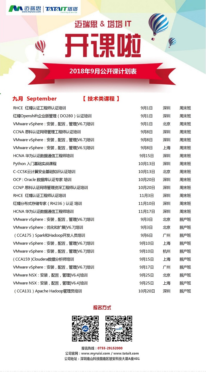 咨詢郵箱:tata@tatait.com 咨詢電話:0755-29152000 新浪微博:@塔塔IT 微信:添加公眾賬號“塔塔IT”加關注!塔塔IT為邁瑞思旗下子品牌,專注高端IT培訓。