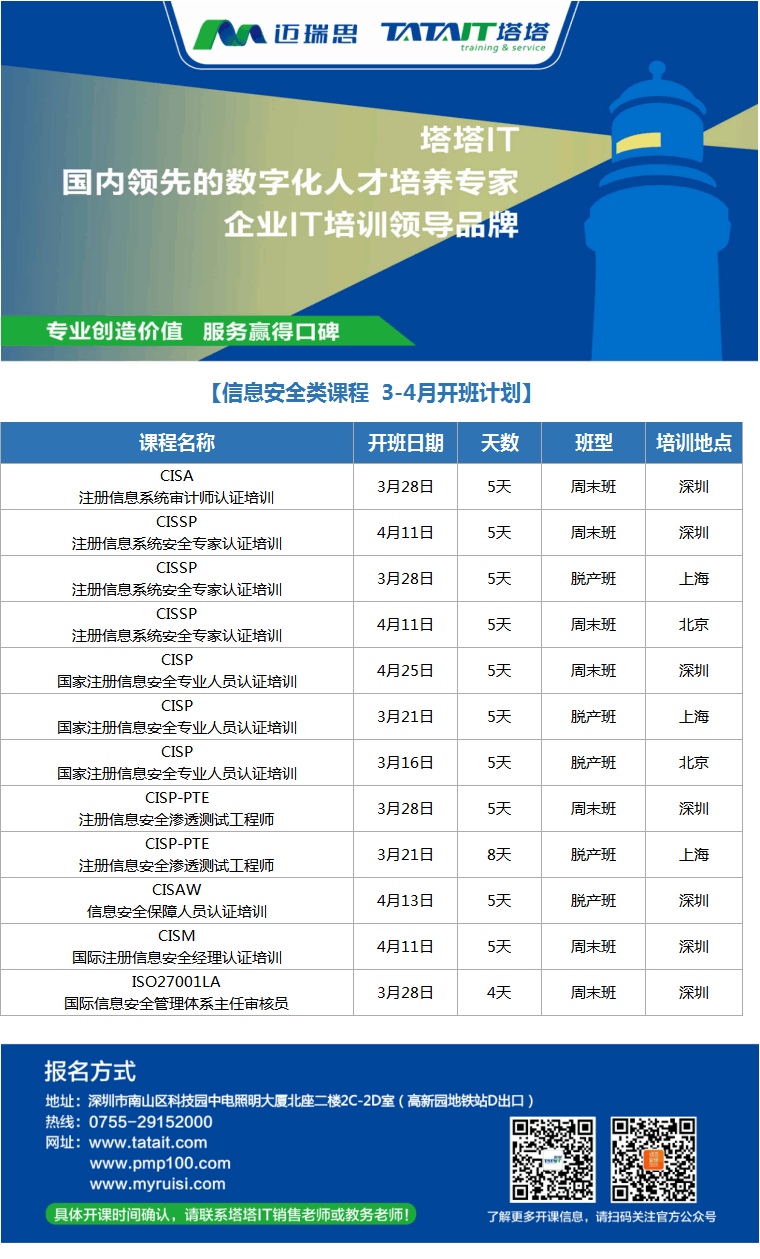 咨詢郵箱:tata@tatait.com 咨詢電話:0755-29152000 新浪微博:@塔塔IT 微信:添加公眾賬號“塔塔IT”加關(guān)注!塔塔IT為邁瑞思旗下子品牌,專注高端IT培訓(xùn)。