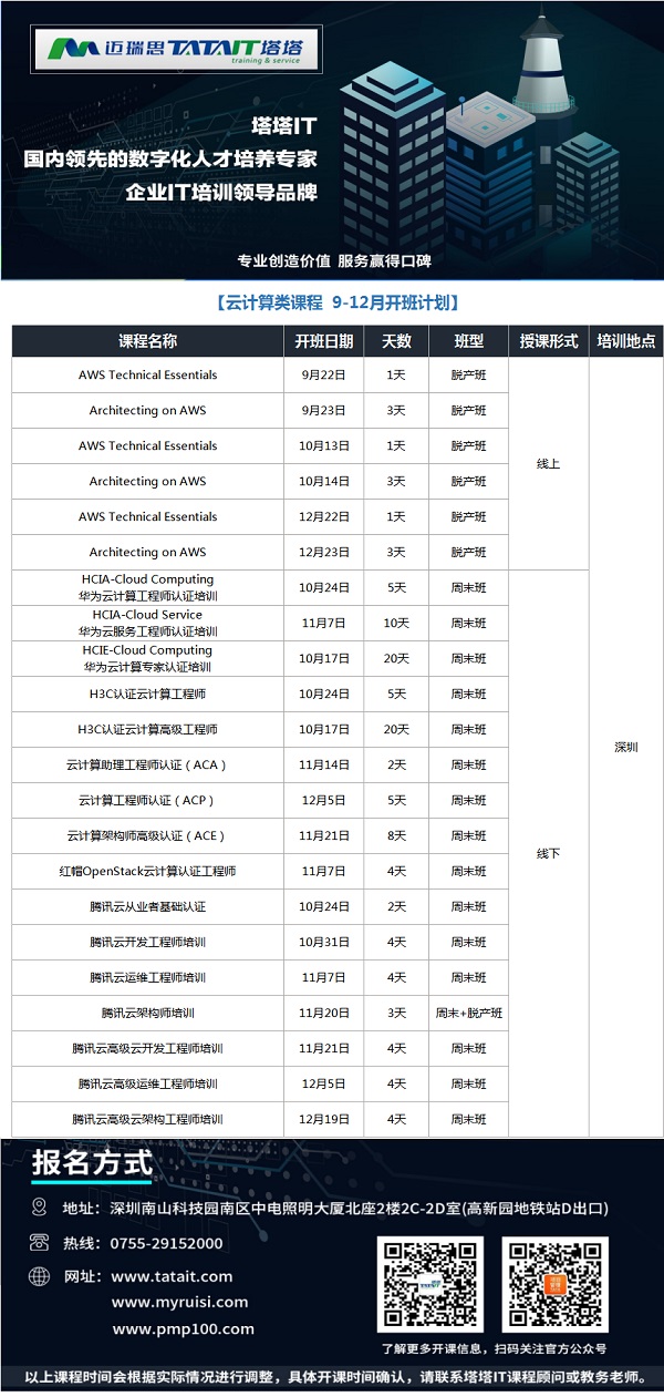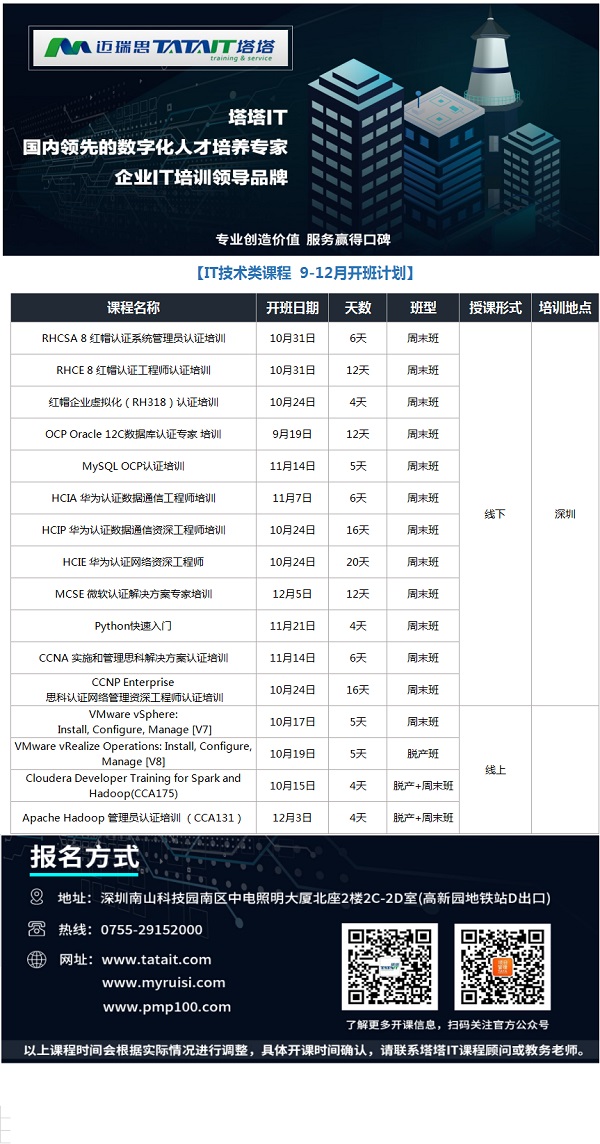 咨詢郵箱:tata@tatait.com 咨詢電話:0755-29152000 新浪微博:@塔塔IT 微信:添加公眾賬號“塔塔IT”加關(guān)注!塔塔IT為邁瑞思旗下子品牌,專注高端IT培訓(xùn)。