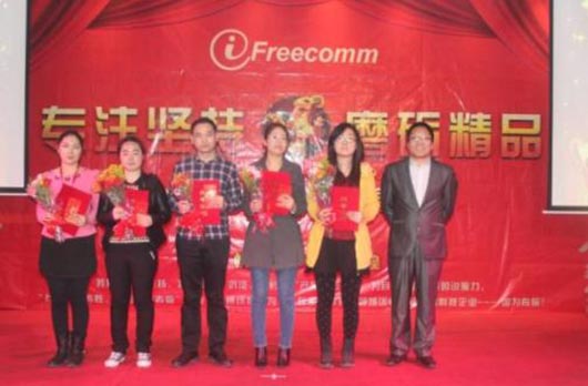 董事長蔣延春先生進行了2014年工作總結(jié)及2015年發(fā)展方向,指出2015年是捷視飛通公司發(fā)展的關(guān)鍵年和機遇年,捷飛要抓住這新的機遇,迎接挑戰(zhàn),創(chuàng)新發(fā)展,我們有決心更有信心努力開創(chuàng)公司發(fā)展的新局面,我們應(yīng)該“懷揣夢想,敬畏前行”, 讓不一樣的捷飛展現(xiàn)在世人面前。隨后, 2014年度優(yōu)秀部門和個人獎逐步揭曉,董事長等公司領(lǐng)導為獲獎?wù)哳C發(fā)了獎品,以表彰他們在2014年為公司發(fā)展作出的貢獻。