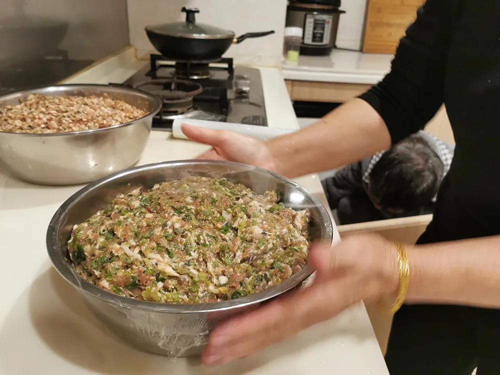 香菇、蔥花、馬蹄、豬肉和餃子皮等